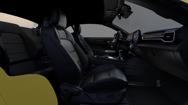 The Mustang's interior has been meticulously crafted to provide a premium driving experience. Sink into the comfortable, heated front seats and take in the sleek, modern design. The SYNC 4 infotainment system keeps you connected and entertained, while the 9-speaker audio system delivers a concert-quality soundscape.
