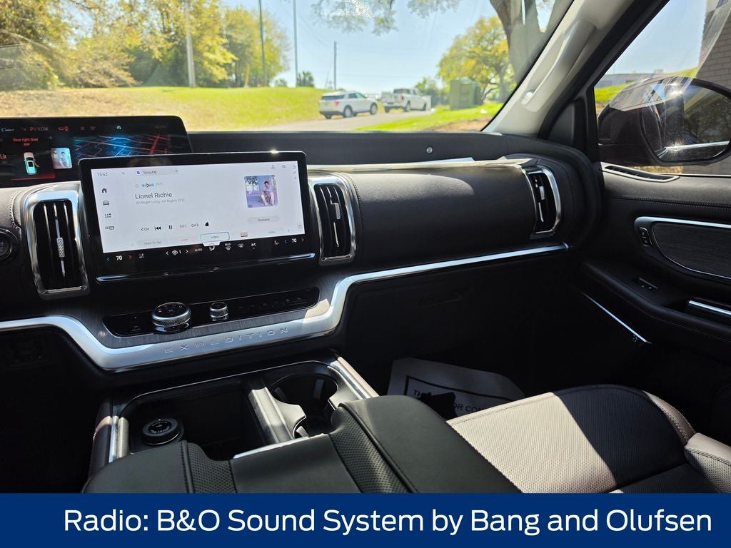 Inside, the Expedition Platinum surrounds you with unparalleled comfort and sophistication. The heated and ventilated leather front captain's chairs, along with the multicontour active motion feature, provide exceptional support and comfort, while the 2nd-row power-folding captain's chairs offer versatility and convenience. The stunning 22-speaker B&O Play Unleashed audio system, complete with a customizable sound experience, will immerse you in your favorite music.
