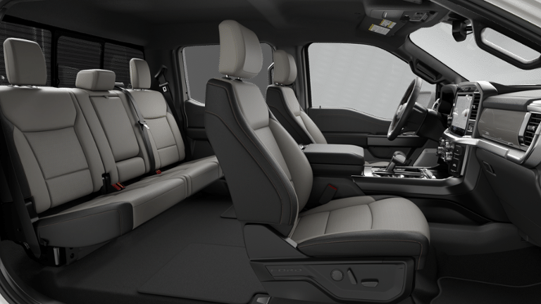 Designed with both form and function in mind, the F-150 Lariat offers a spacious and comfortable interior with ActiveX trimmed bucket seats, a console worksurface, and a power-sliding rear window. The Mobile Office Package further enhances productivity with features like a partitioned lockable rear storage and a wireless charging pad.