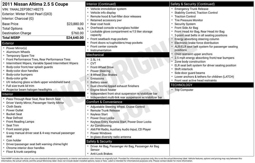 - Vehicle Name: Nissan Altima