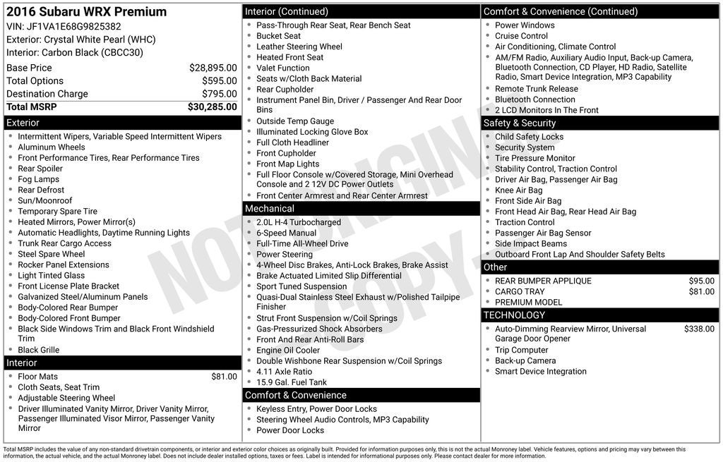 - Vehicle Name: Subaru WRX