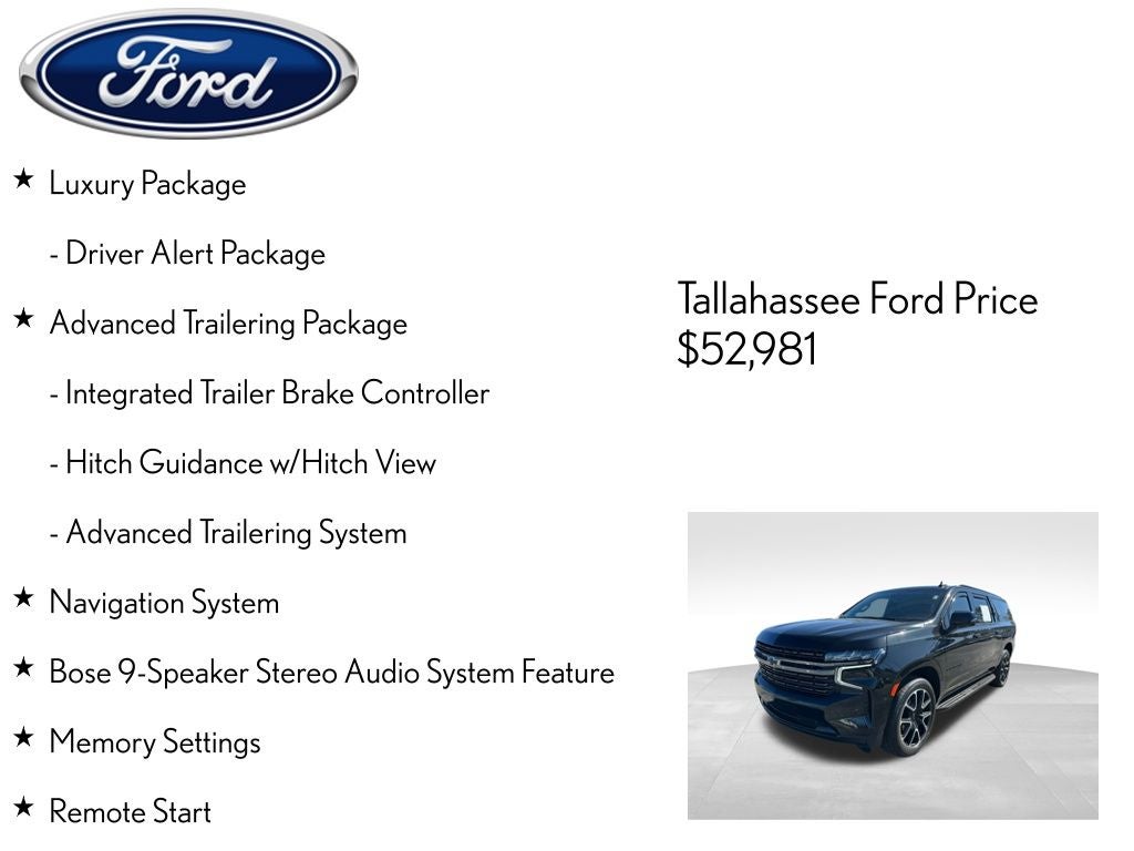 The Suburban's spacious and well-appointed interior is designed to cater to your every need. The Luxury Package includes a wealth of premium features, such as heated and power-adjustable front seats, a heated steering wheel, and a stunning Bose 9-speaker audio system. The Rear Media and Nav Package further enhances the driving experience with a rear-seat entertainment system and a premium navigation system with a large 10.2-inch touchscreen display.