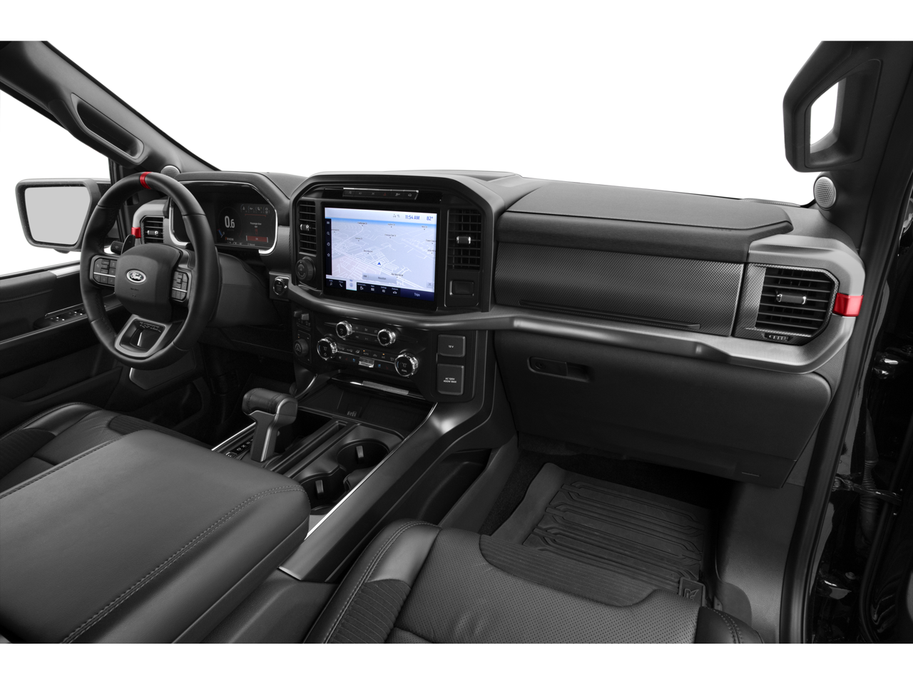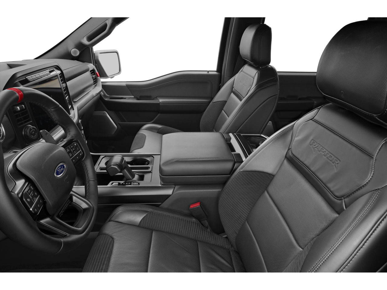 This Raptor also boasts a suite of smart technologies, including BlueCruise Prep Kit, Connected Built-In Navigation, and Wireless Charging Pad, ensuring a seamless and connected driving experience. The Recaro-style front seats with unique blue accents and the Raptor-specific blue leather console add a touch of premium style.