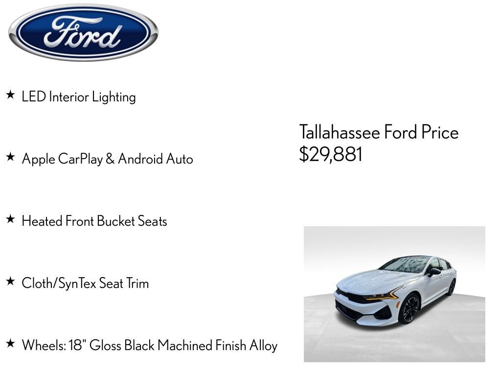 Powered by a 1.6L I4 DGI Turbocharged engine, the K5 GT-Line delivers an impressive 180 horsepower and an exceptional fuel economy of 27 city/37 highway MPG, making it both thrilling and efficient. The 8-speed automatic transmission provides seamless power delivery and smooth shifting, ensuring a responsive and engaging driving experience.