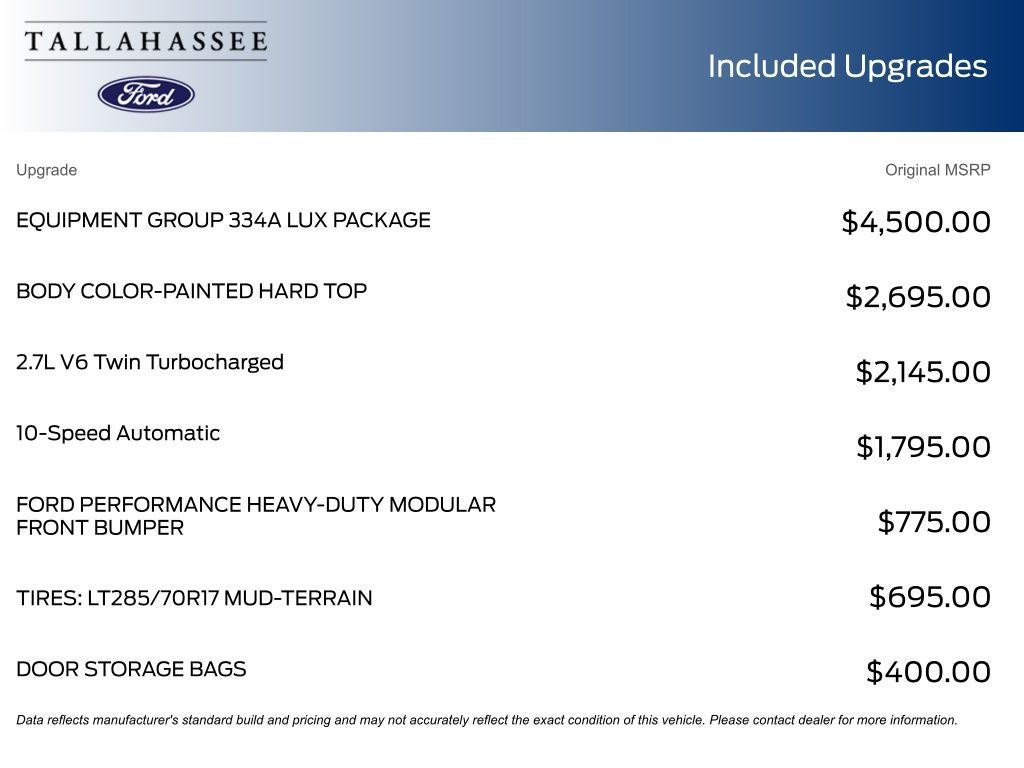 - Tires: LT285/70R17 A/T -inc: full size spare tire w/TPMS